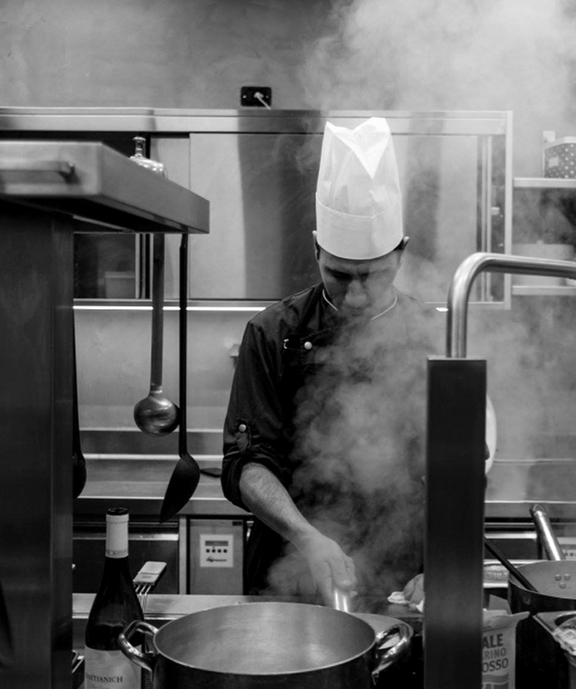 Paolo, classe 1983, è approdato ai fornelli dopo una carriera da ciclista professionista che ha abbandonato a 19 anni per seguire la passione della cucina. Dopo varie esperienze, tra cui un anno in un ristorante italiano a Salisburgo, e varie tappe in ristoranti stellati, ha aperto un locale proprio a La Spezia, sua città d’origine, sempre mantenendo viva la curiosità di studiare e sperimentare nuove tecniche di cucina, che alla fine lo hanno portato a incontrare la famiglia Ferro-Sandri decidendo di entrare a far parte della loro realtà.